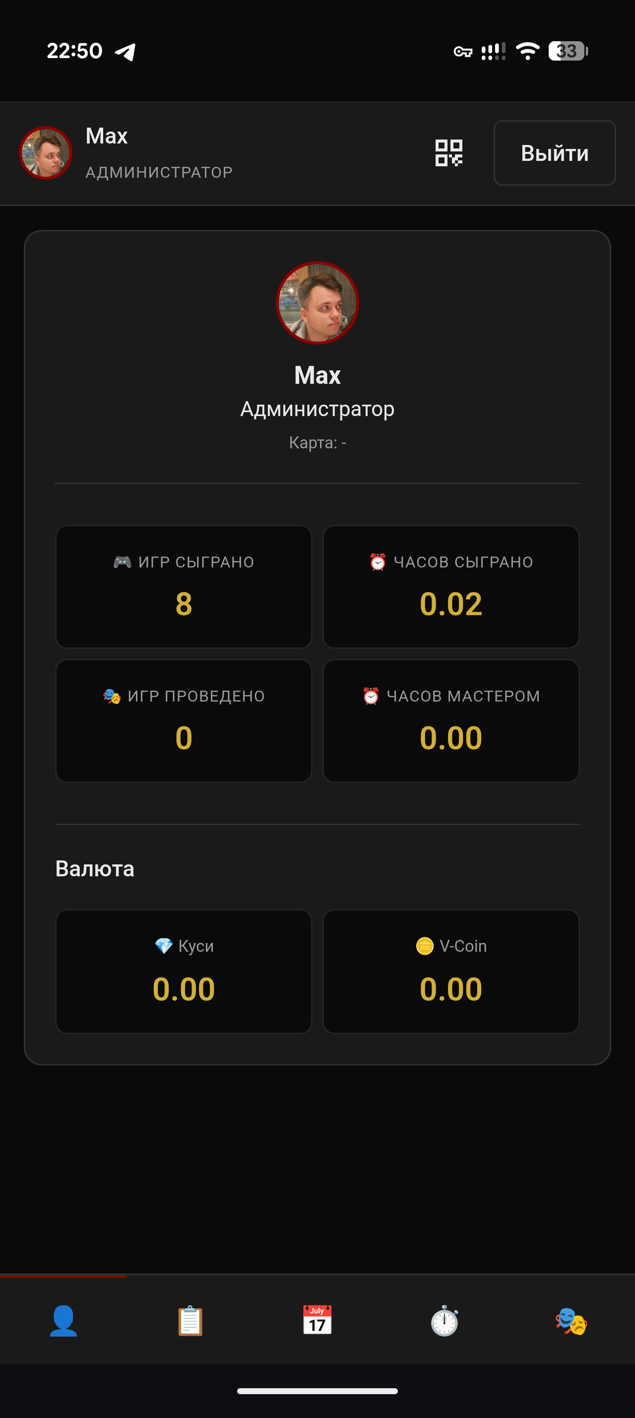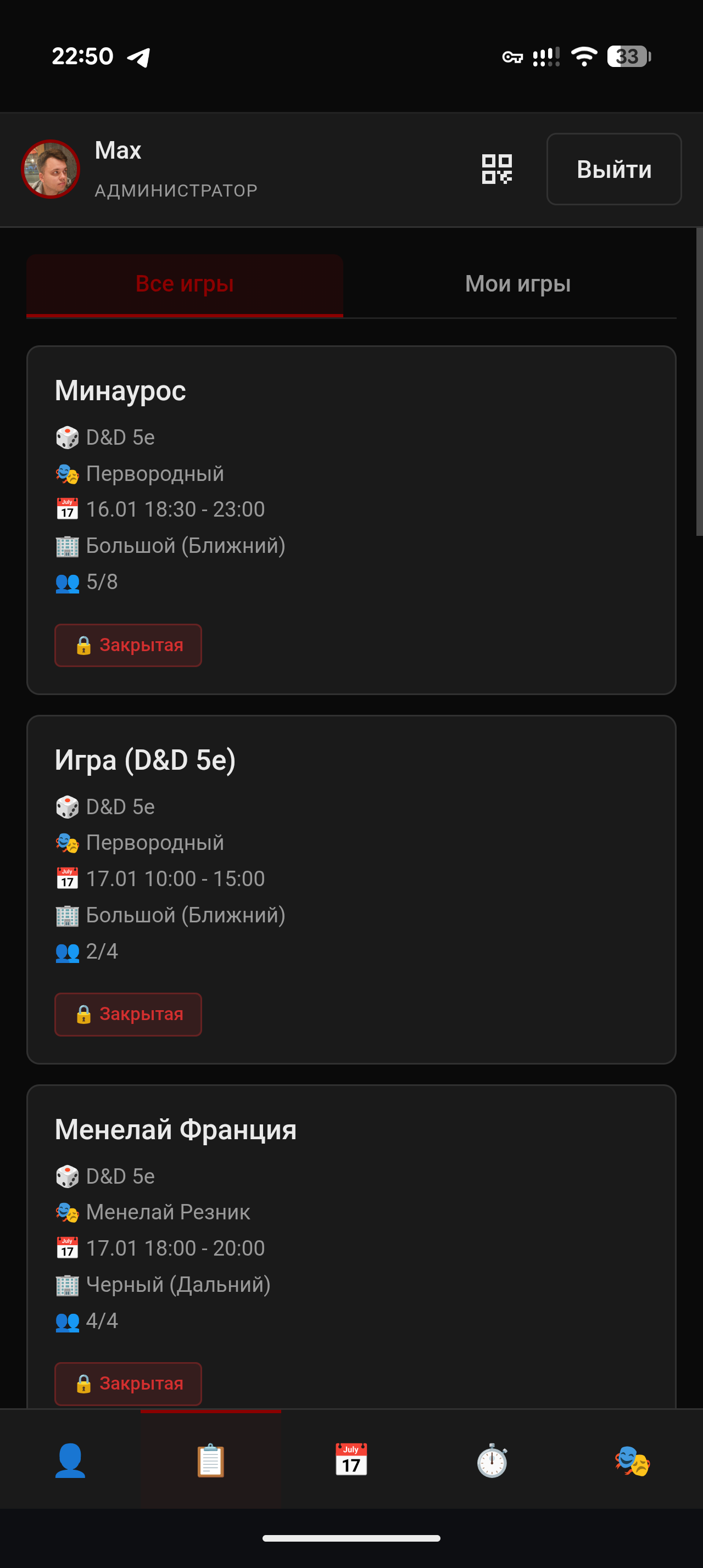 - Роли игроков, мастеров и администраторов